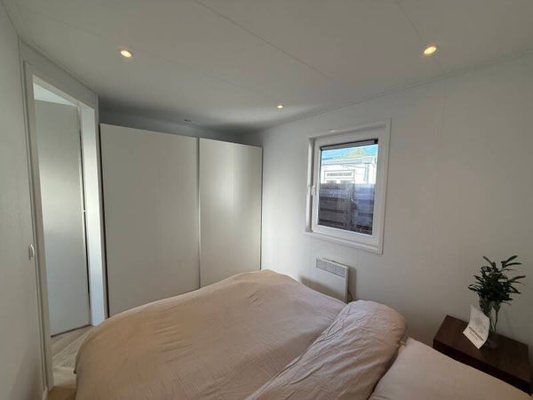 Dit nieuwe chalet (ca. 10 x 4 meter) is hoogwaardig afgewerkt en direct gebruiksklaar. Volledig elektrisch, voorzien van airco én warmtepomp voor zowel verwarmen als koelen.